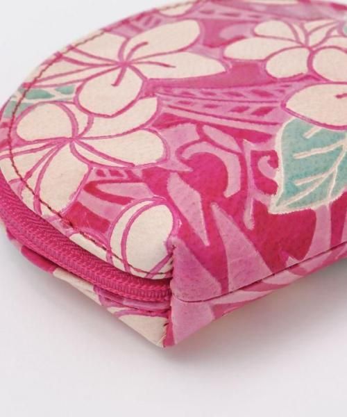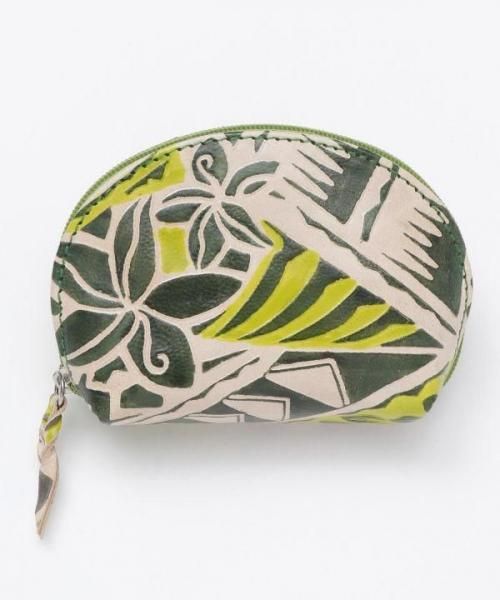 ぬくもり溢れるヤギ皮にプルメリアやトライバル柄,ホヌが描かれた可愛いポーチです♪