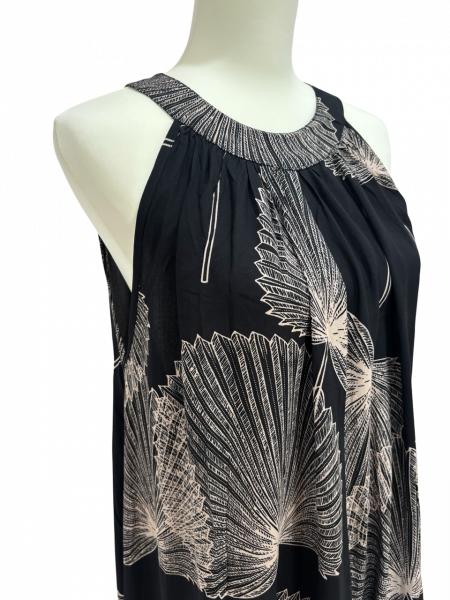 落ち着いたカラーリングと肌ざわりの良いレーヨン素材で大人のリゾートスタイルを演出します。