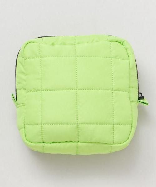 スクエア型のキルティングデザインと鮮やかなカラーリングが目を引くポーチ。